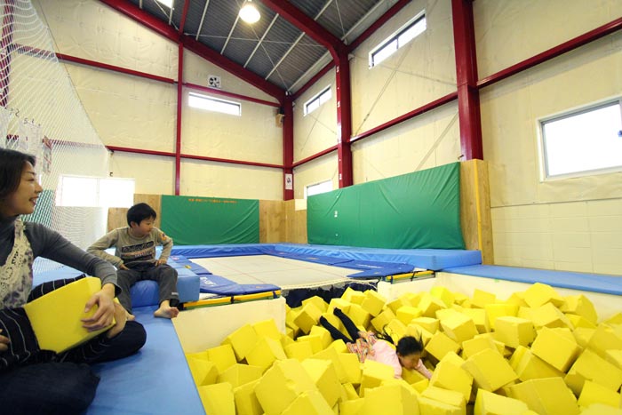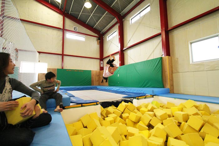 トランポリン、クライミング、ジャンプ台と色々な楽しみ方が出来るピット。一般の方が自由に楽しめる施設としてトランポリンだけでも珍しいですが、ピットもついているのは全国でもここだけ!ぜひ、この楽しさを体験してみてください♪