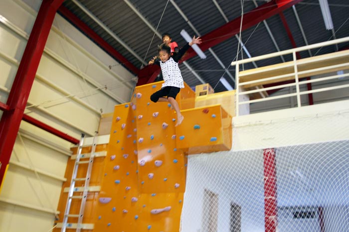 ピットの反対側にはクライミングウォールとジャンプ台が!